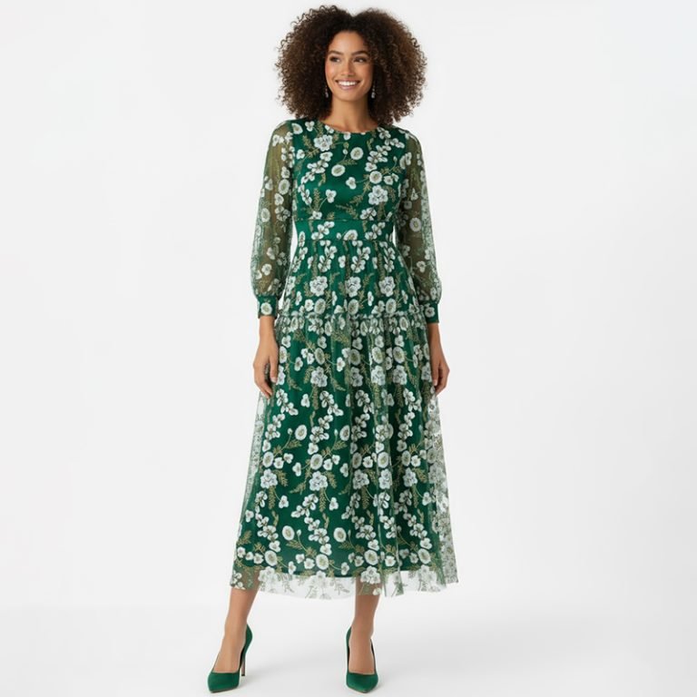 Floral Embroidered Long Sleeve Dress