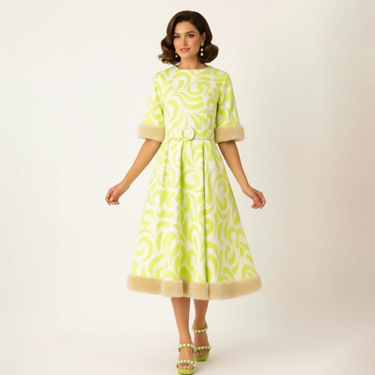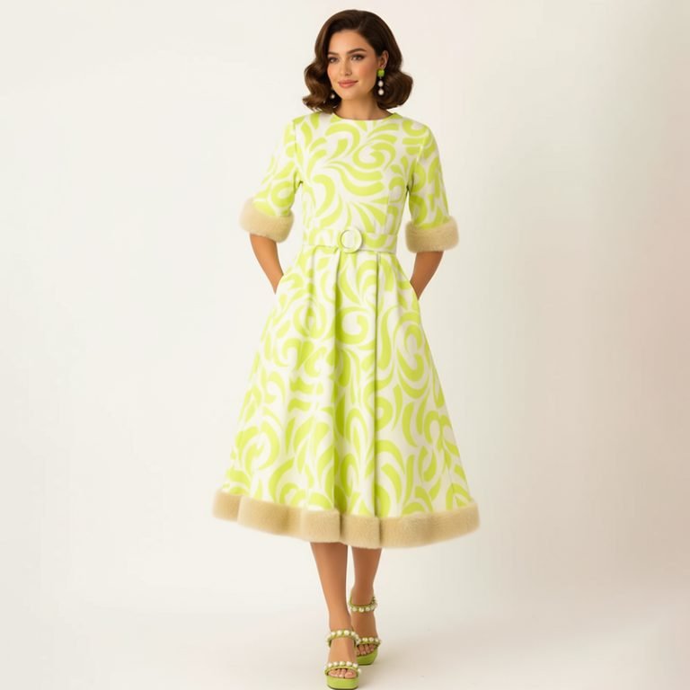 Faux Fur Trim Midi Dress