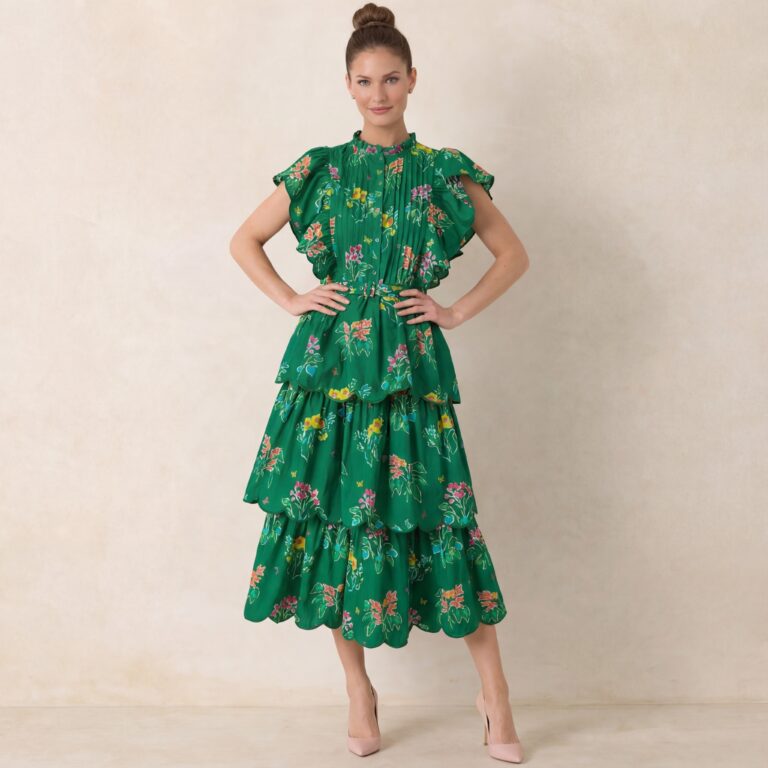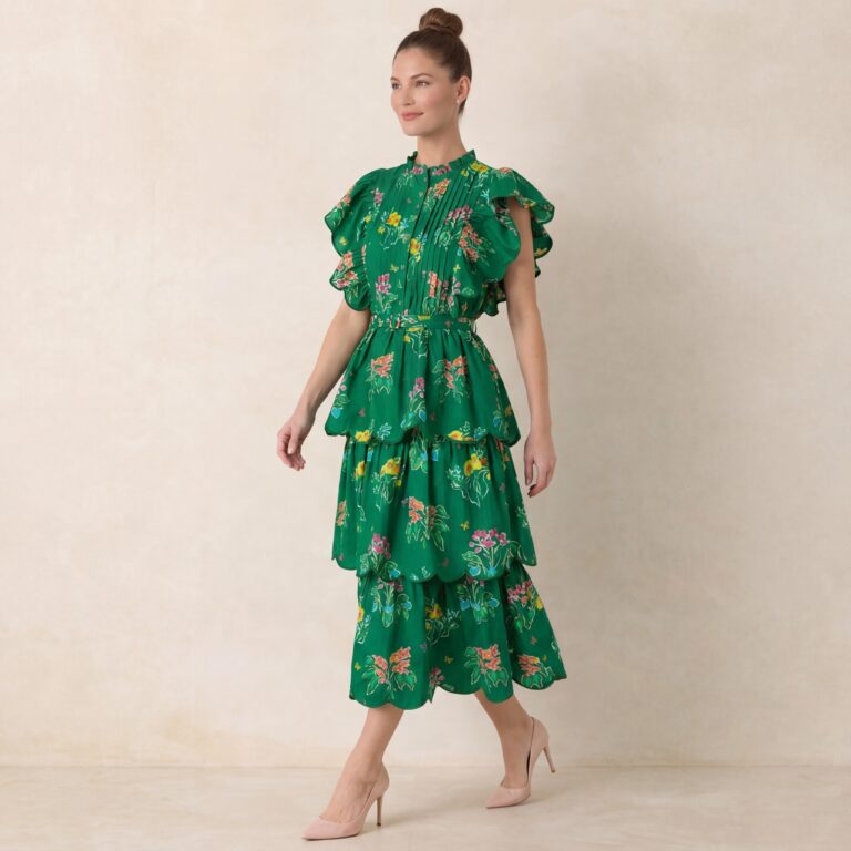 Green Tiered Tulle Midi Dress
