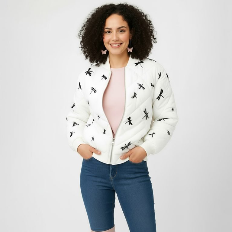 White Floral Butterfly Quilted Jacket