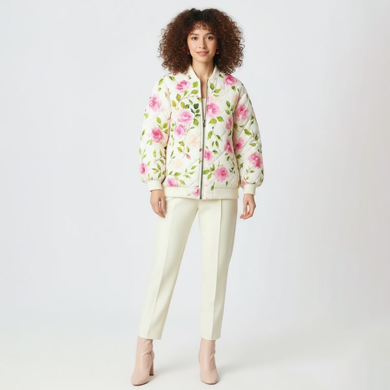Pink Floral Quilted Bomber Jacket