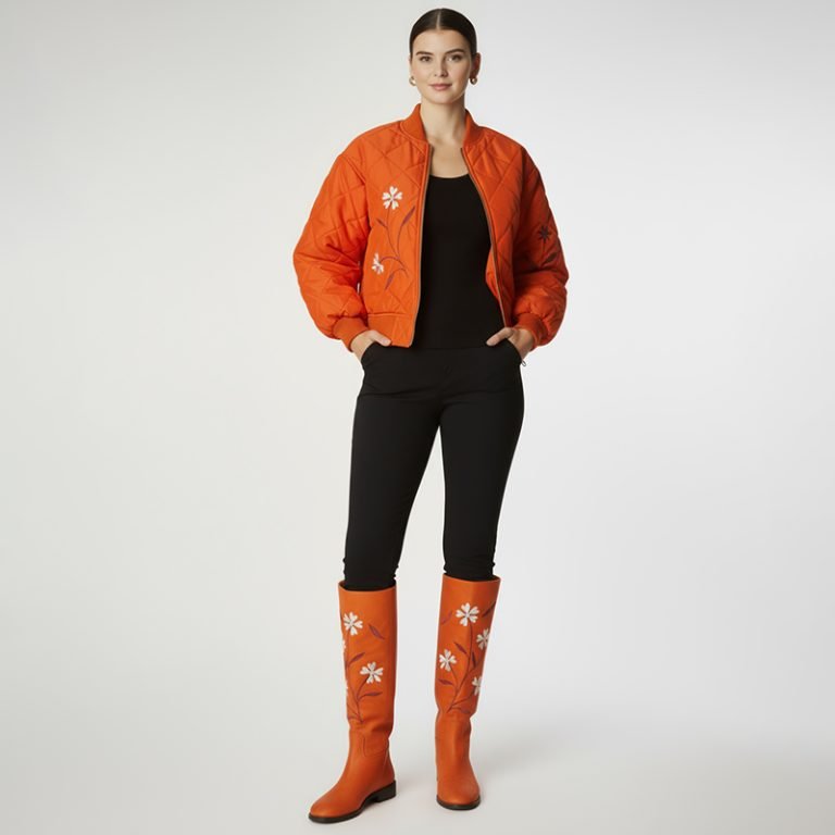 Orange Floral Quilted Bomber Jacket