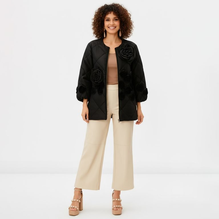 Black Quilted Floral Bomber Jacket