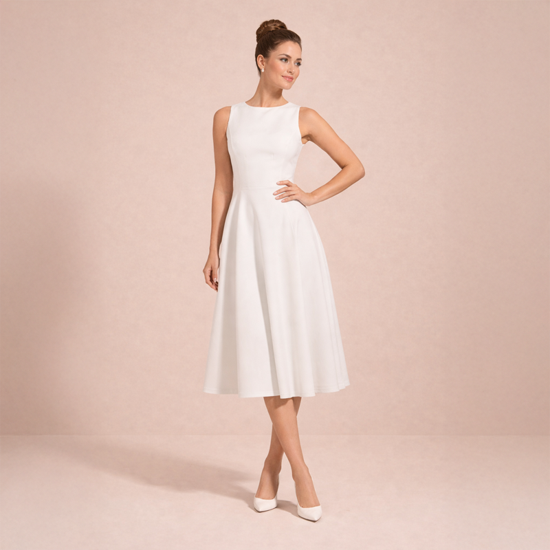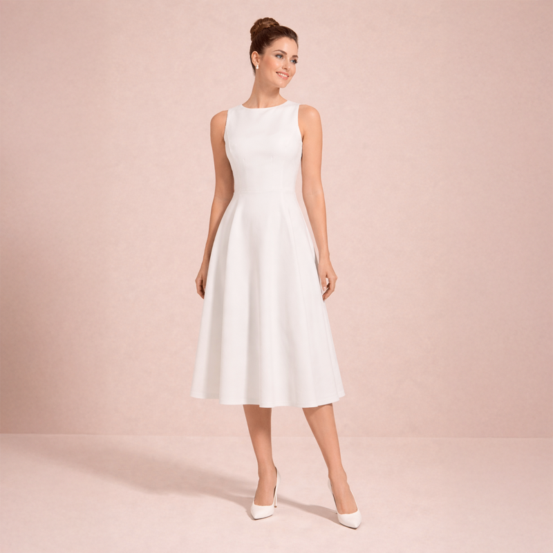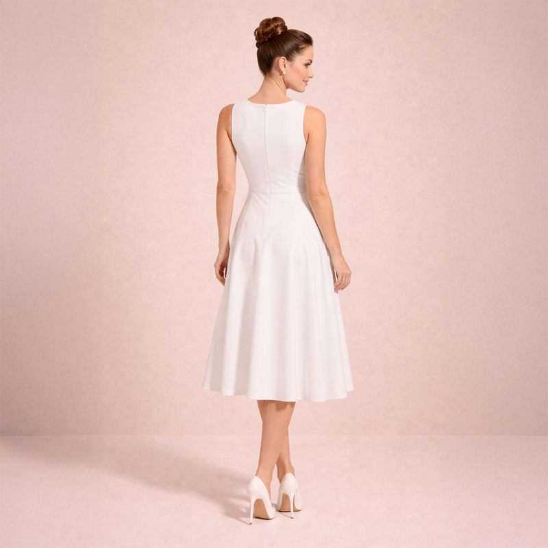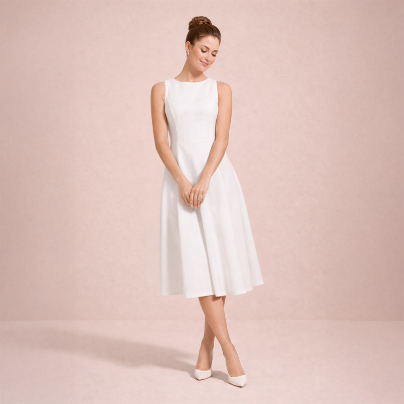 A timeless sleeveless midi dress with a clean, elegant silhouette. Style it with heels and minimal accessories for a refined look.