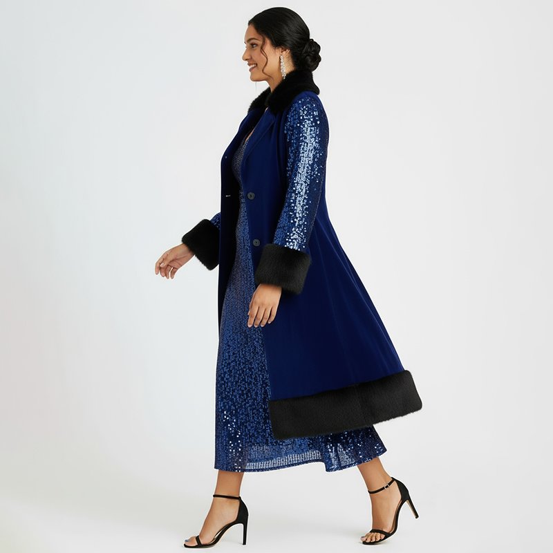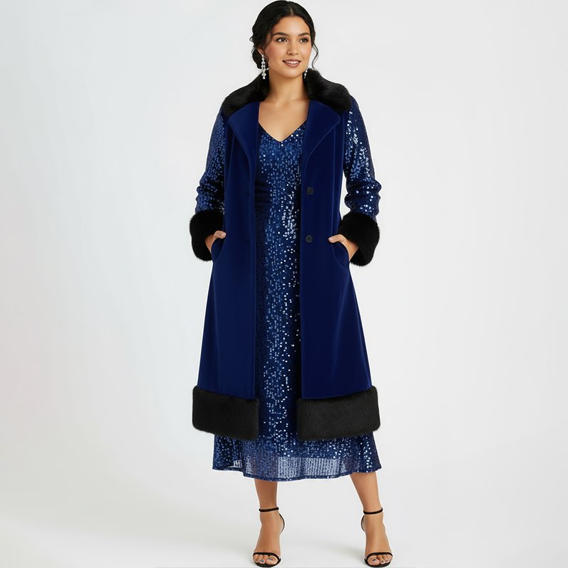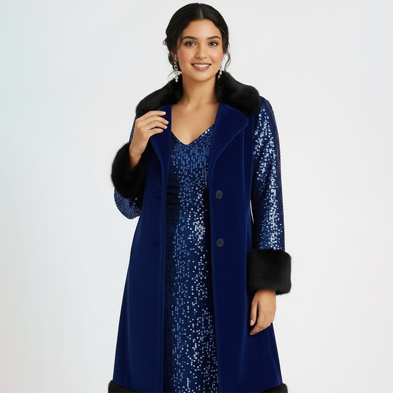 This coat exceeded my expectations. The faux fur trim feels soft and warm, and the sequins add just the right amount of sparkle. I wore it to a winter wedding and felt so confident.