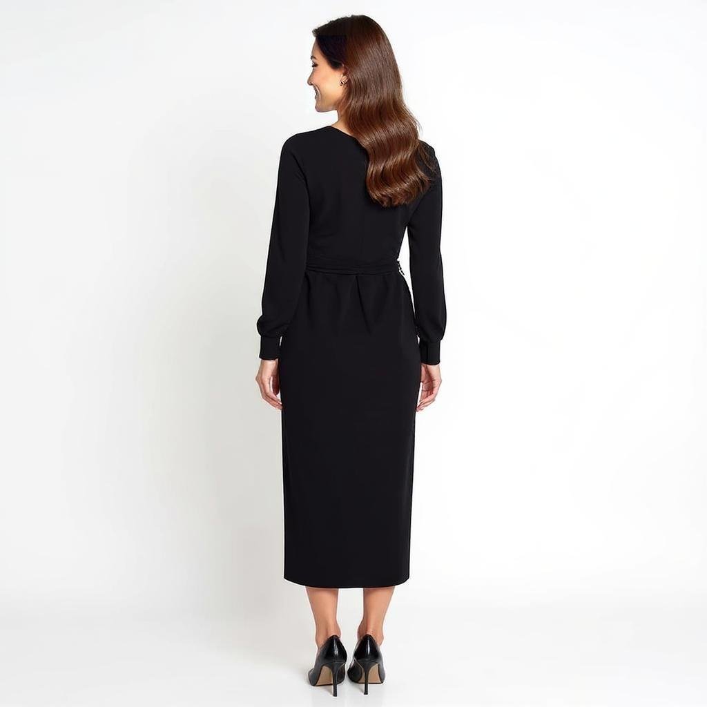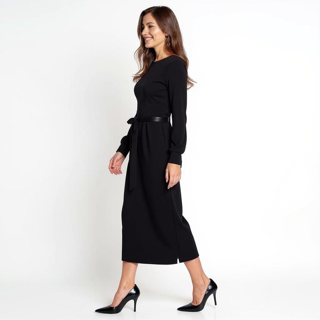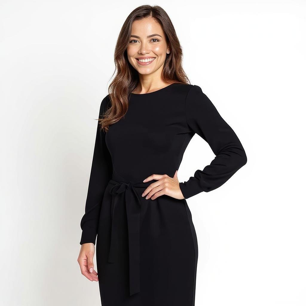 The Andrea Knit Bodycon Dress combines elegance and comfort with its stretch ribbed fabric, detachable waist tie, and classic design.- Model is 5'4" wearing size S. You can select your height before purchase for the perfect fit.