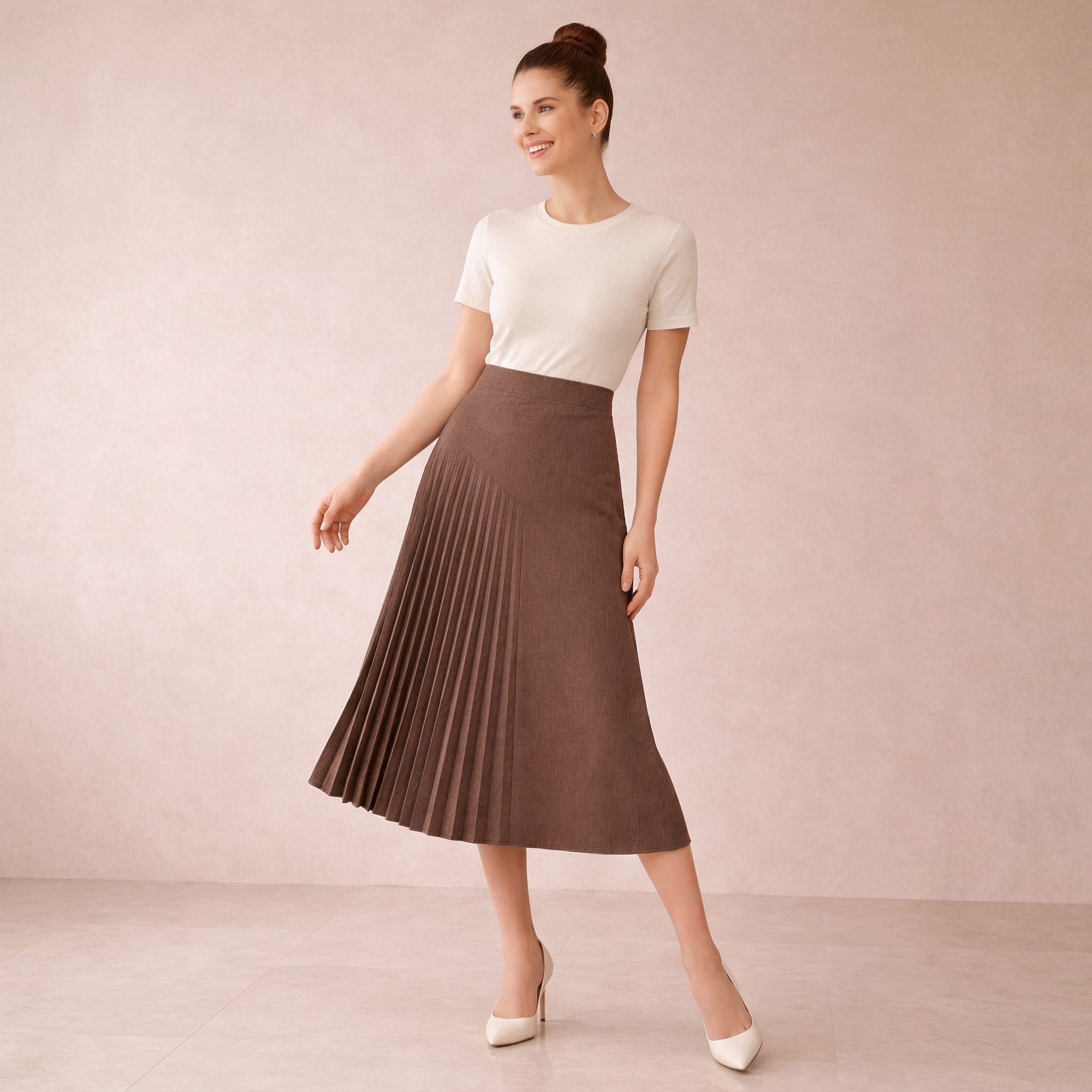 Asymmetrical Pleated Midi Skirt