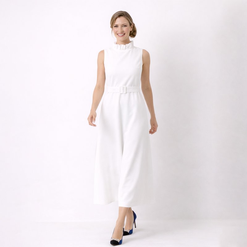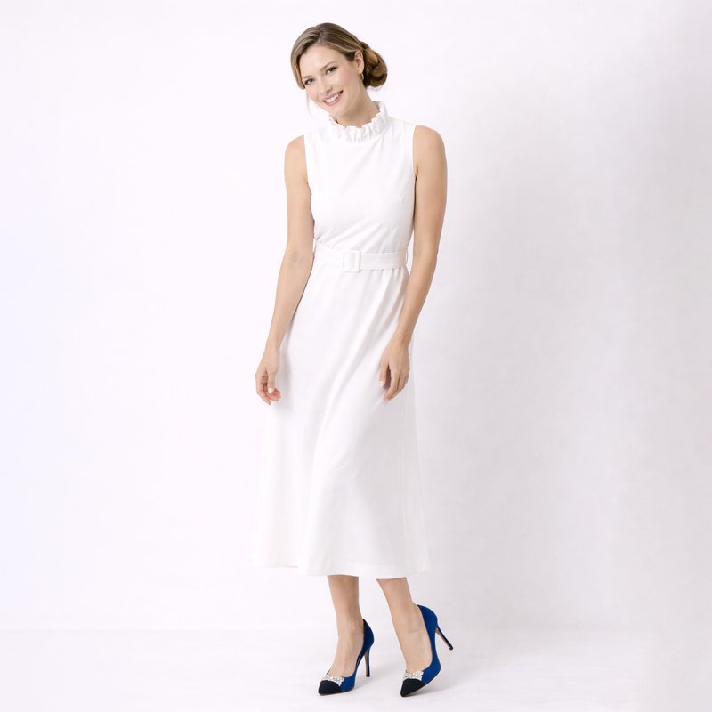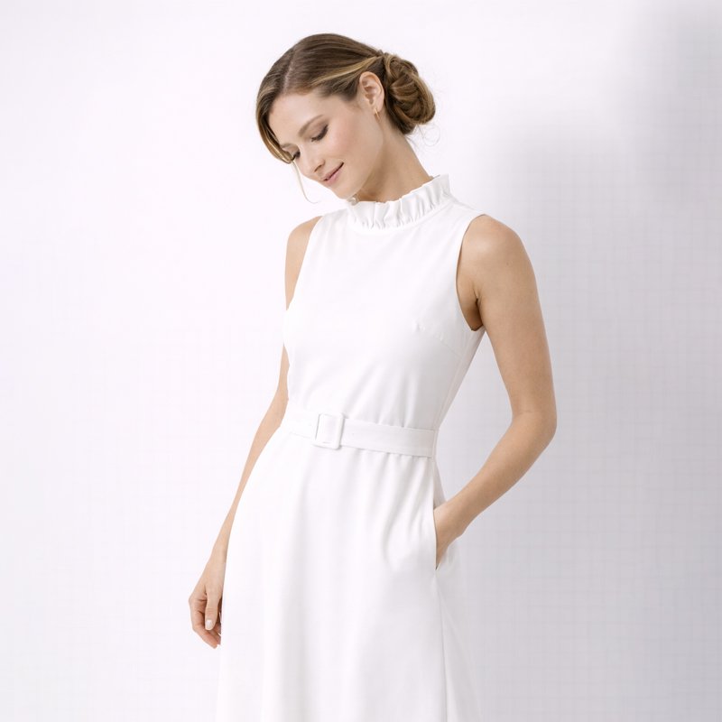 This elegant white sleeveless dress is a timeless wardrobe essential, perfect for formal events, special occasions, or refined daytime wear.-