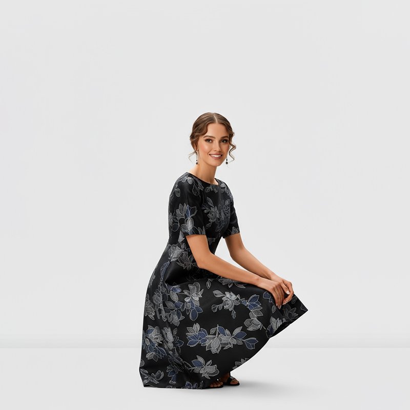 Step into elegance with this Black Floral Midi Dress, designed with a flattering fit-and-flare silhouette and vibrant floral prints. Perfect for weddings, church, or evening gatherings, this dress combines classic charm with modern style for any special occasion.