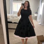 Elegant black midi length with flattering fit-and-flare silhouette