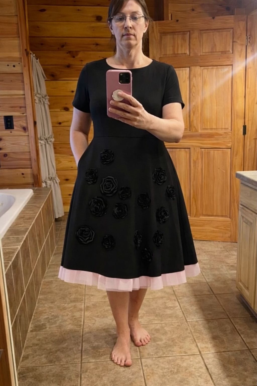 Soft pink tulle underlay adds volume and contrast