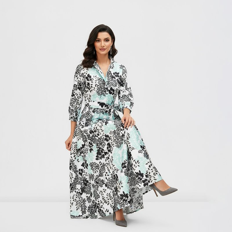 Step out in style with this black and mint floral maxi dress, perfect for making a statement at your next event.