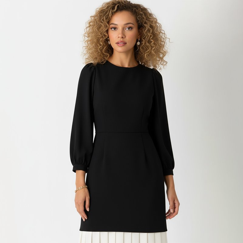 The long sleeves and tailored cut make this dress feel very elegant. Great quality.