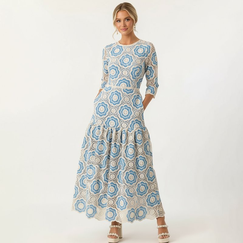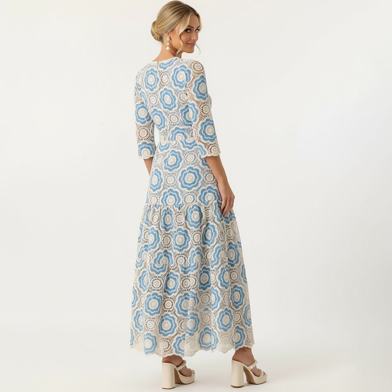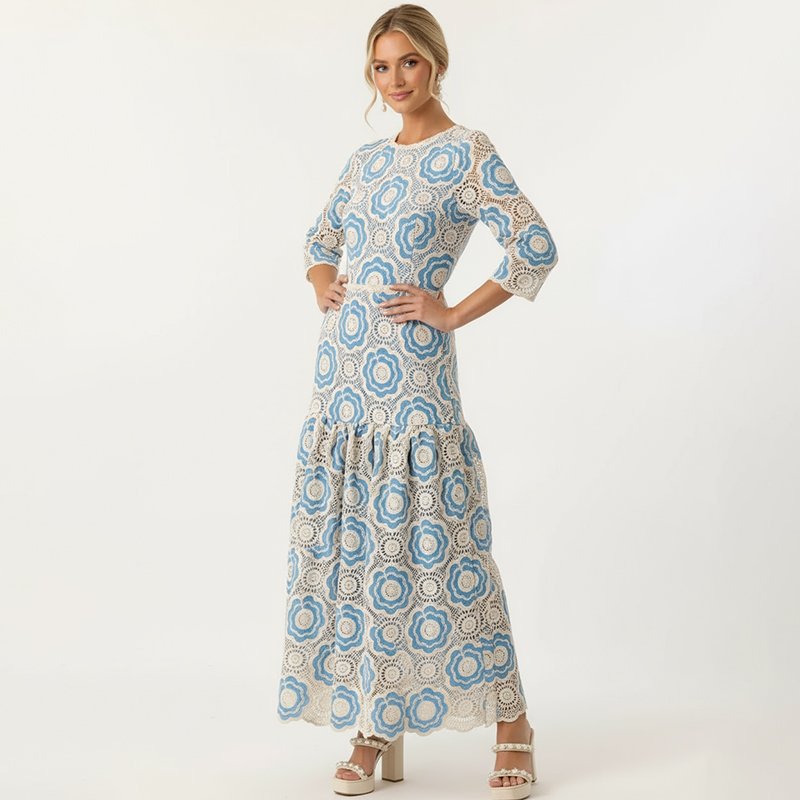 Blue Crochet Lace Maxi Dress