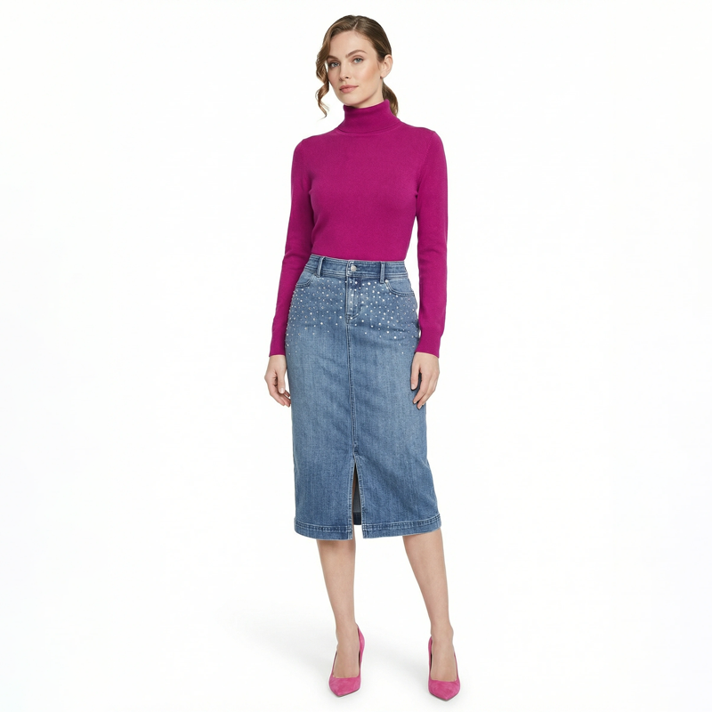 Classic, versatile, and easy to style—this denim midi skirt is perfect for everyday outfits. Pair it with a knit sweater and heels for a polished look, or a casual tee and sneakers for relaxed days.