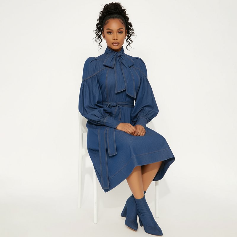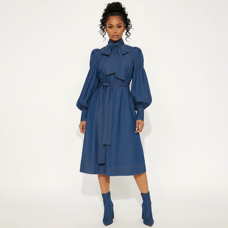 Bow Tie Denim Midi Dress