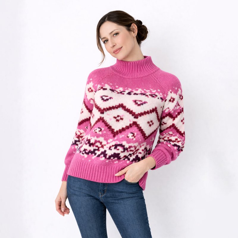 A soft and cozy knit sweater ideal for casual outings, weekend wear, or cozy days at home, its textured knit and eye-catching design make it a standout piece for your seasonal wardrobe.