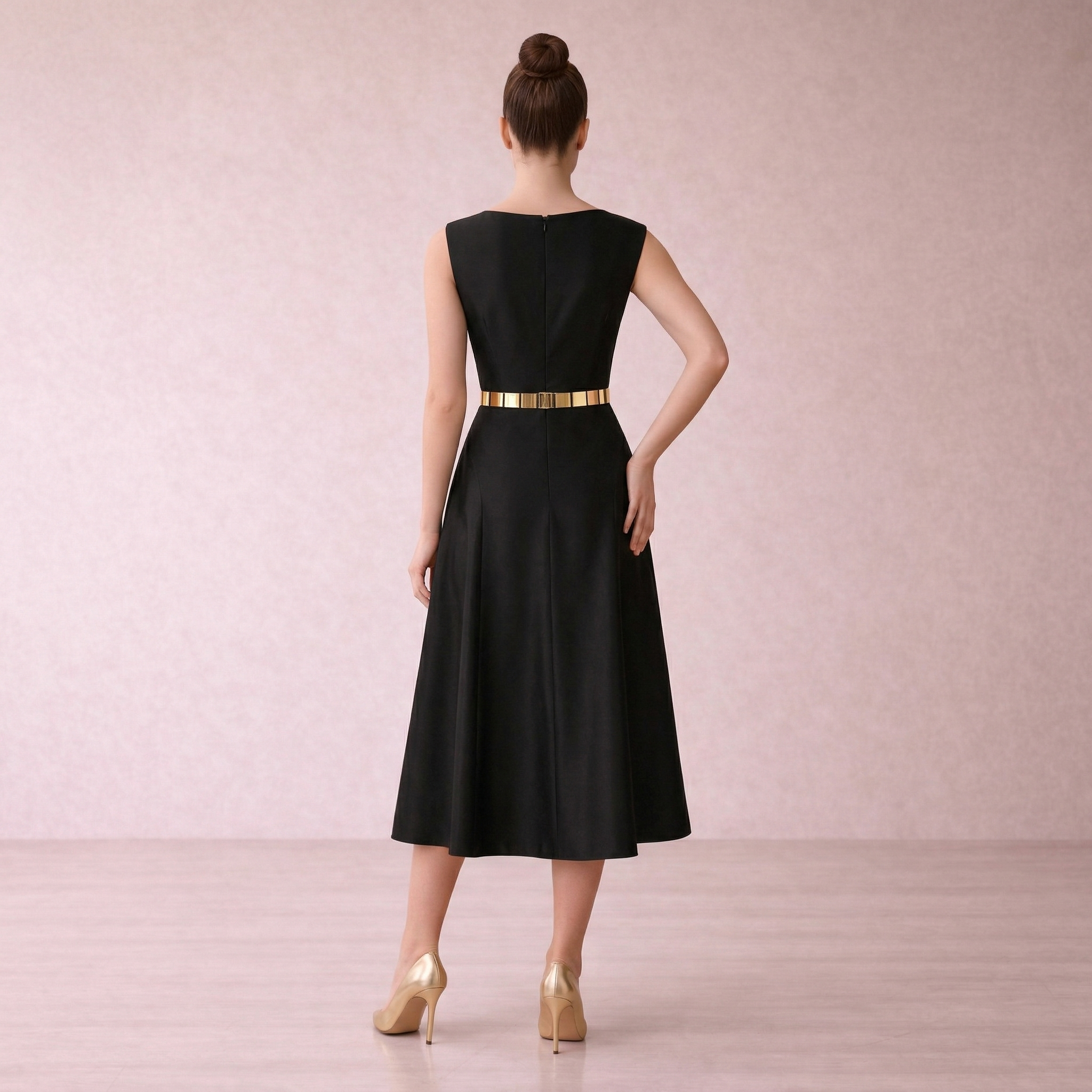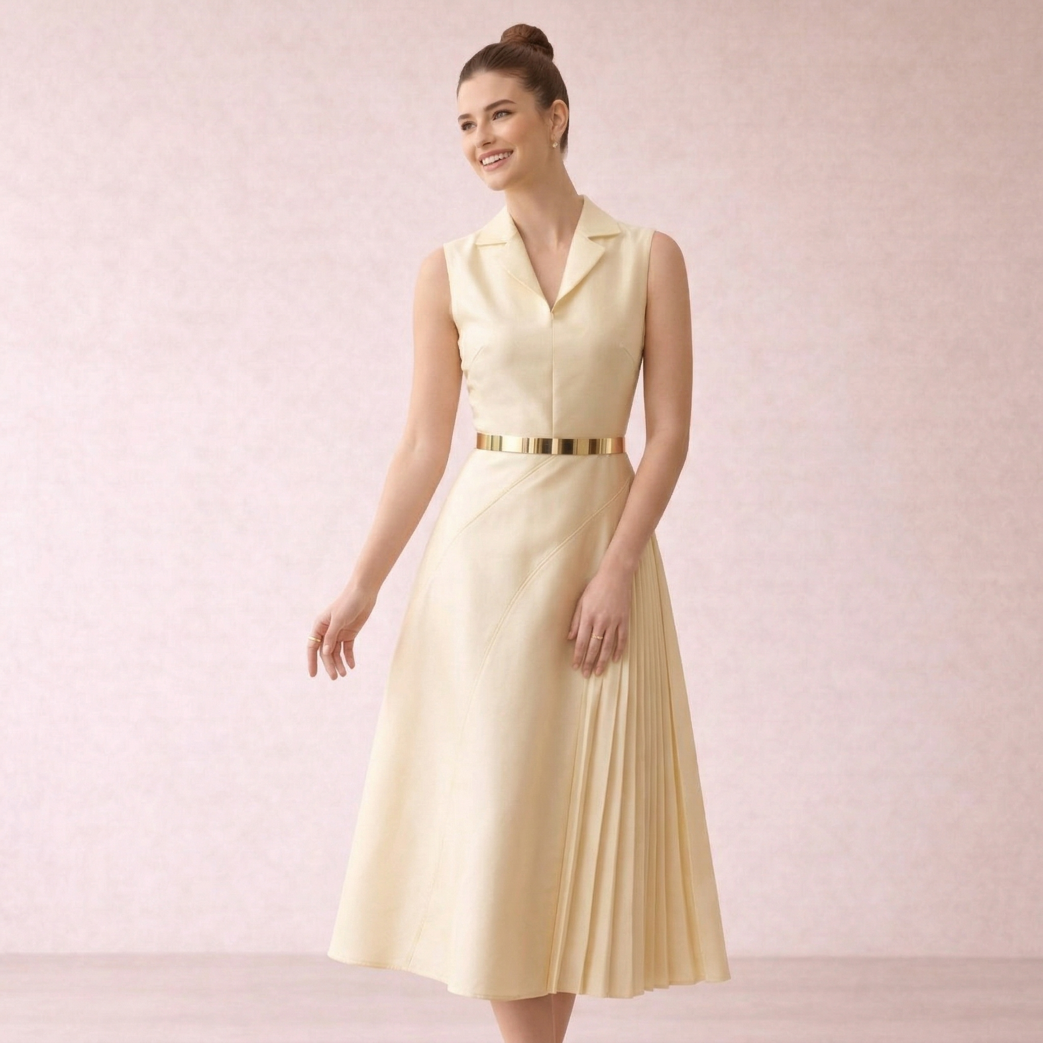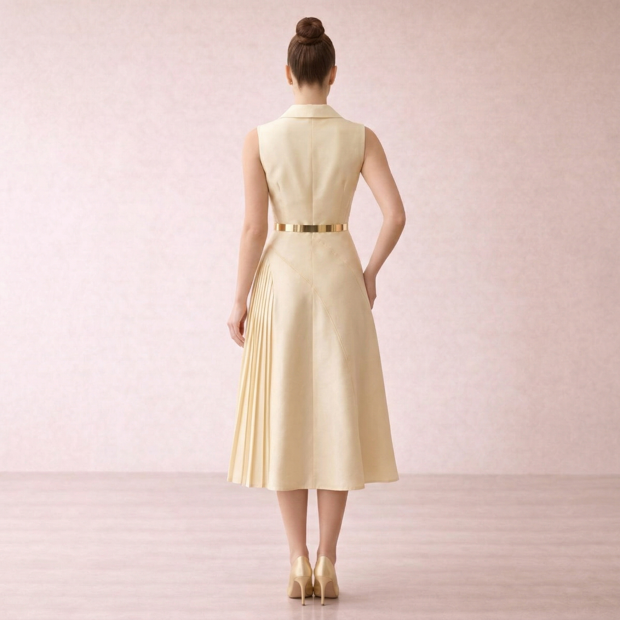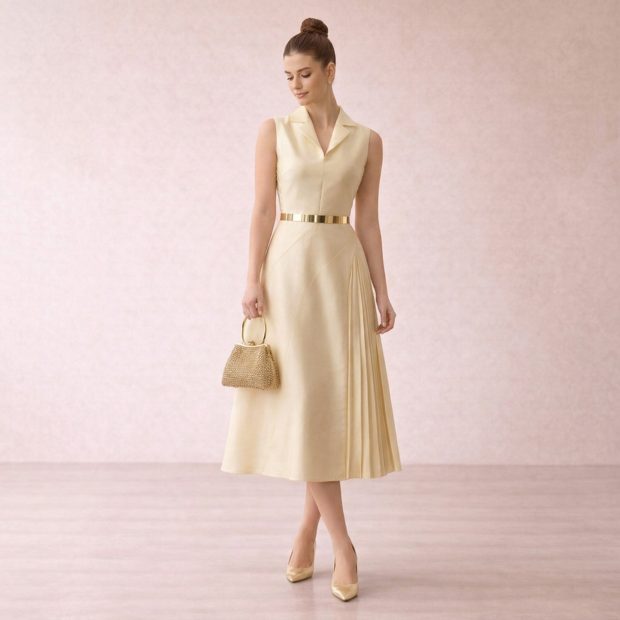 Gold Pleated Panel Midi Dress