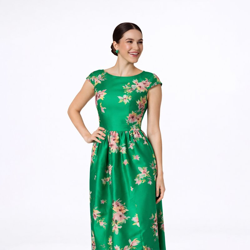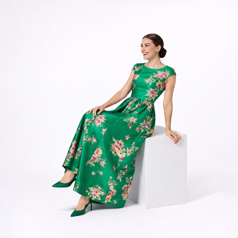 Green Floral Satin Maxi Dress