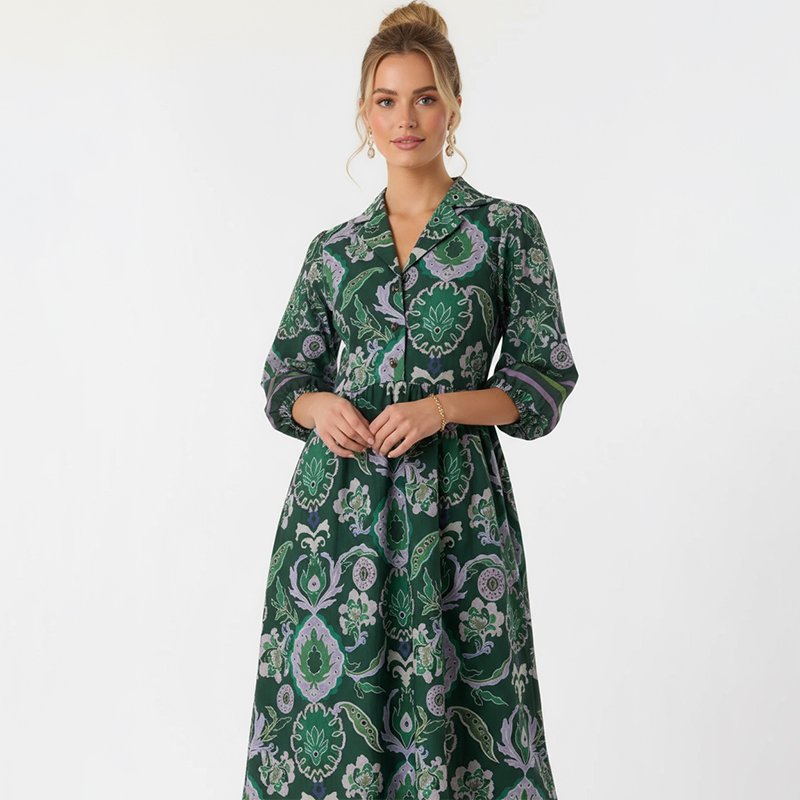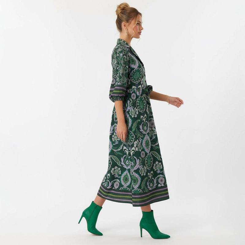 Step into timeless elegance with this paisley print midi dress designed to make every outing feel special.-