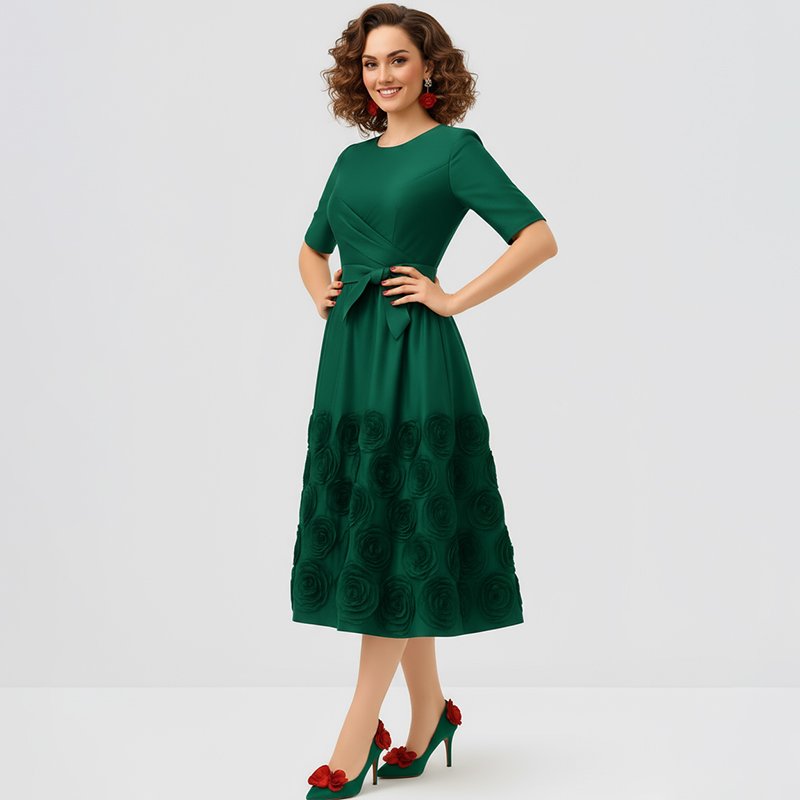 Step into timeless elegance with this green rosette midi dress, perfect for garden parties, holiday gatherings, or any event where you want to radiate effortless charm.