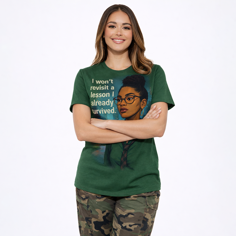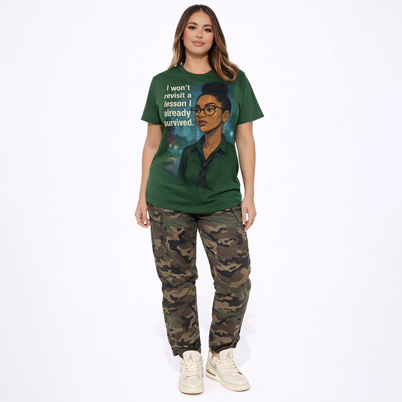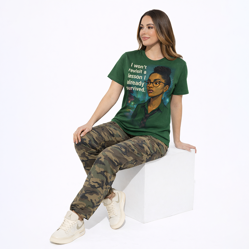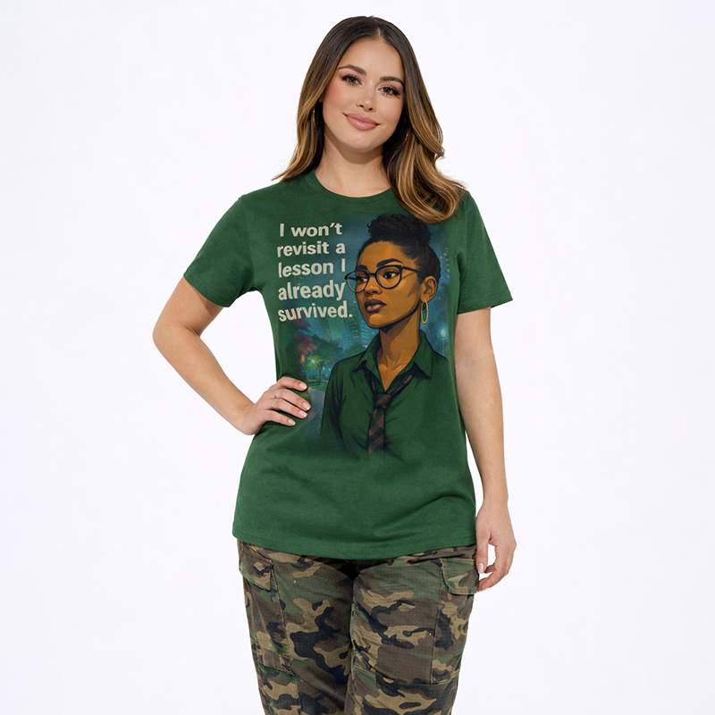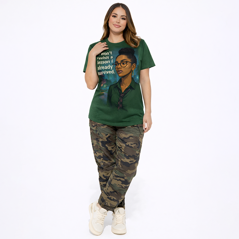 A stylish green graphic t-shirt with an empowering quote and modern illustration design. Perfect for casual wear, daily outfits.-