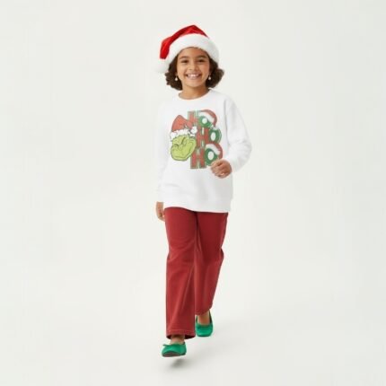 The cutest holiday pullover ever! The Grinch detail is bright and playful, and the fabric feels high quality. My kid loves how soft it is inside perfect for cozy December nights!