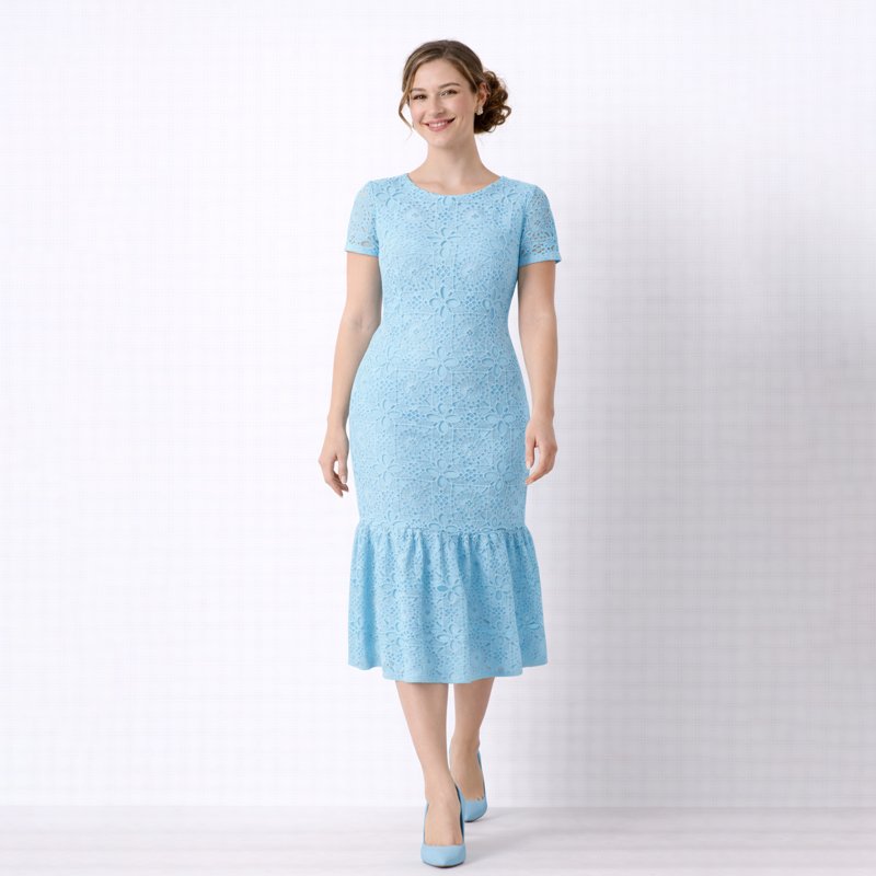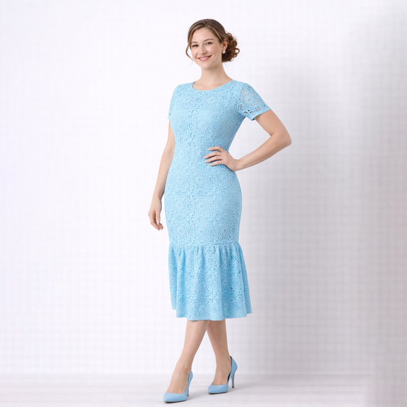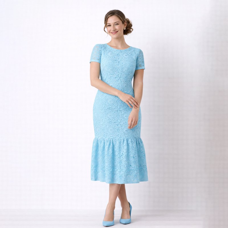 This soft blue lace midi dress brings effortless elegance with its delicate floral texture and flattering silhouette. It’s perfect for daytime events.-