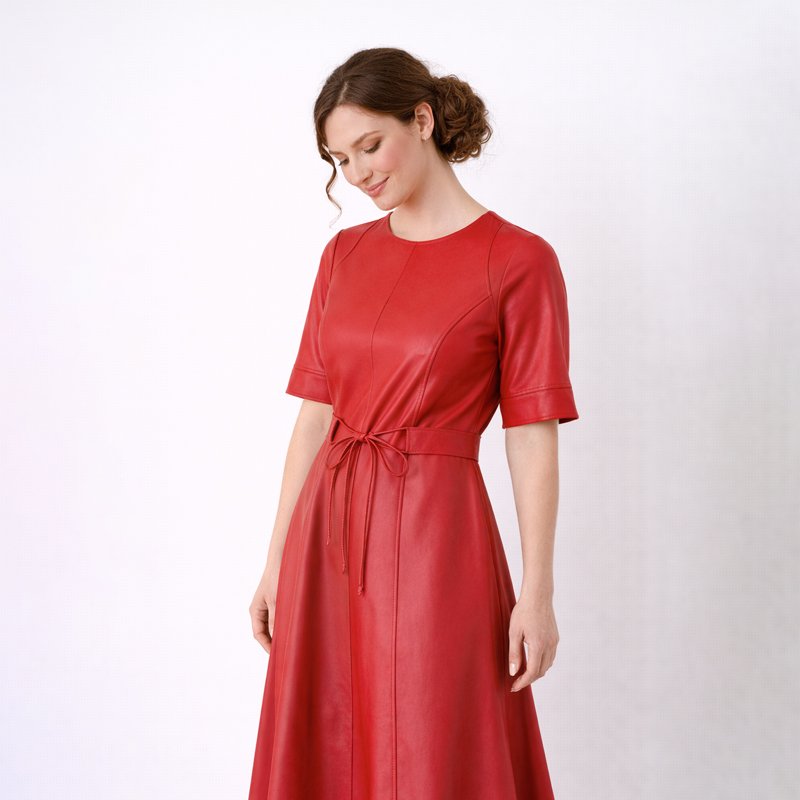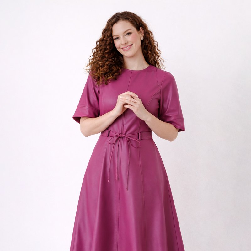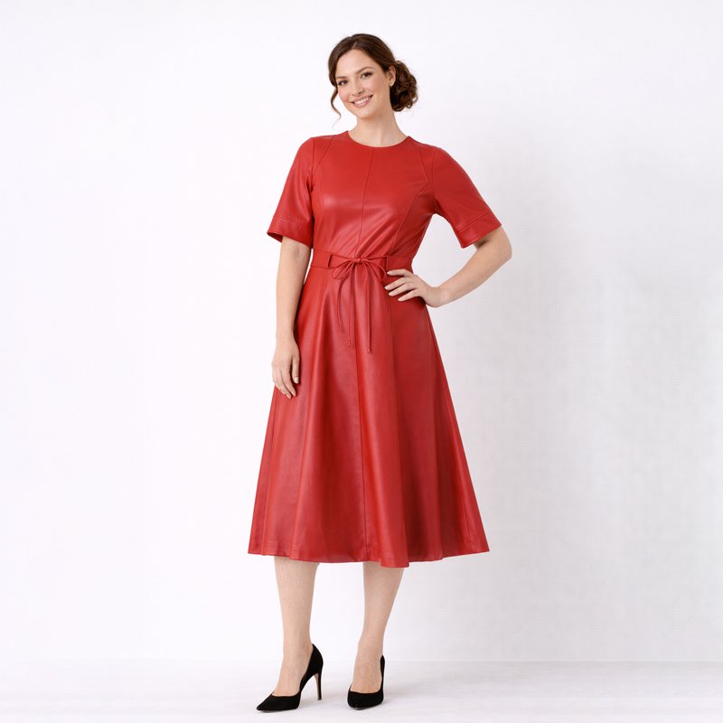 This elegant midi dress features a smooth, structured finish with a flattering fit-and-flare silhouette. Perfect for workdays, brunch dates, church, or effortless day-to-evening wear.-