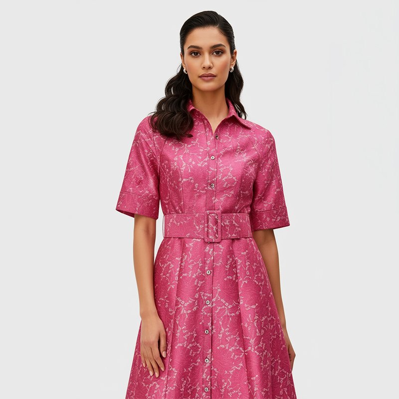 A-line Belted Button-Up Midi Dress
