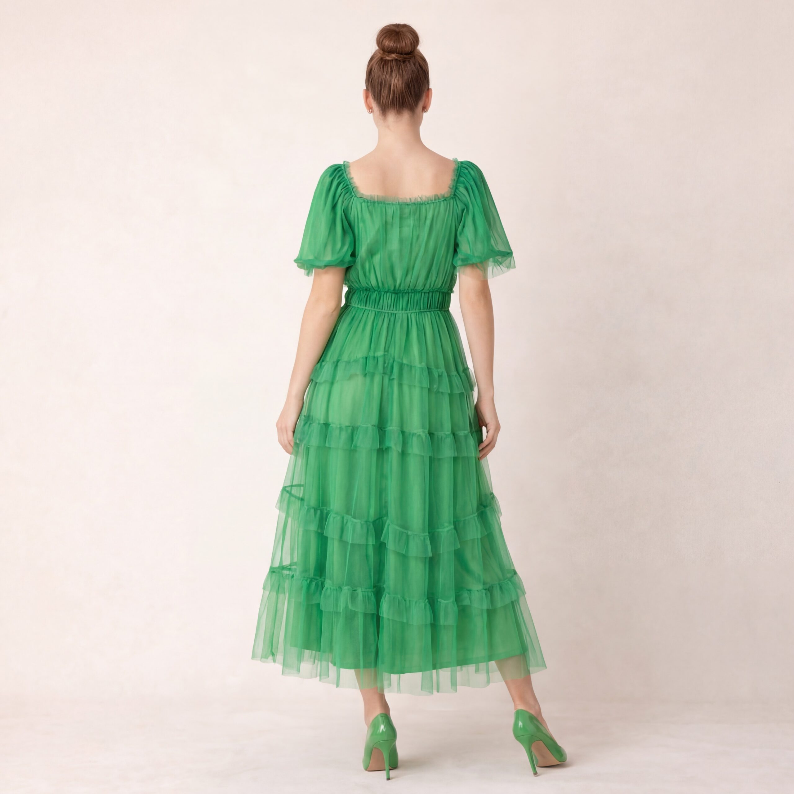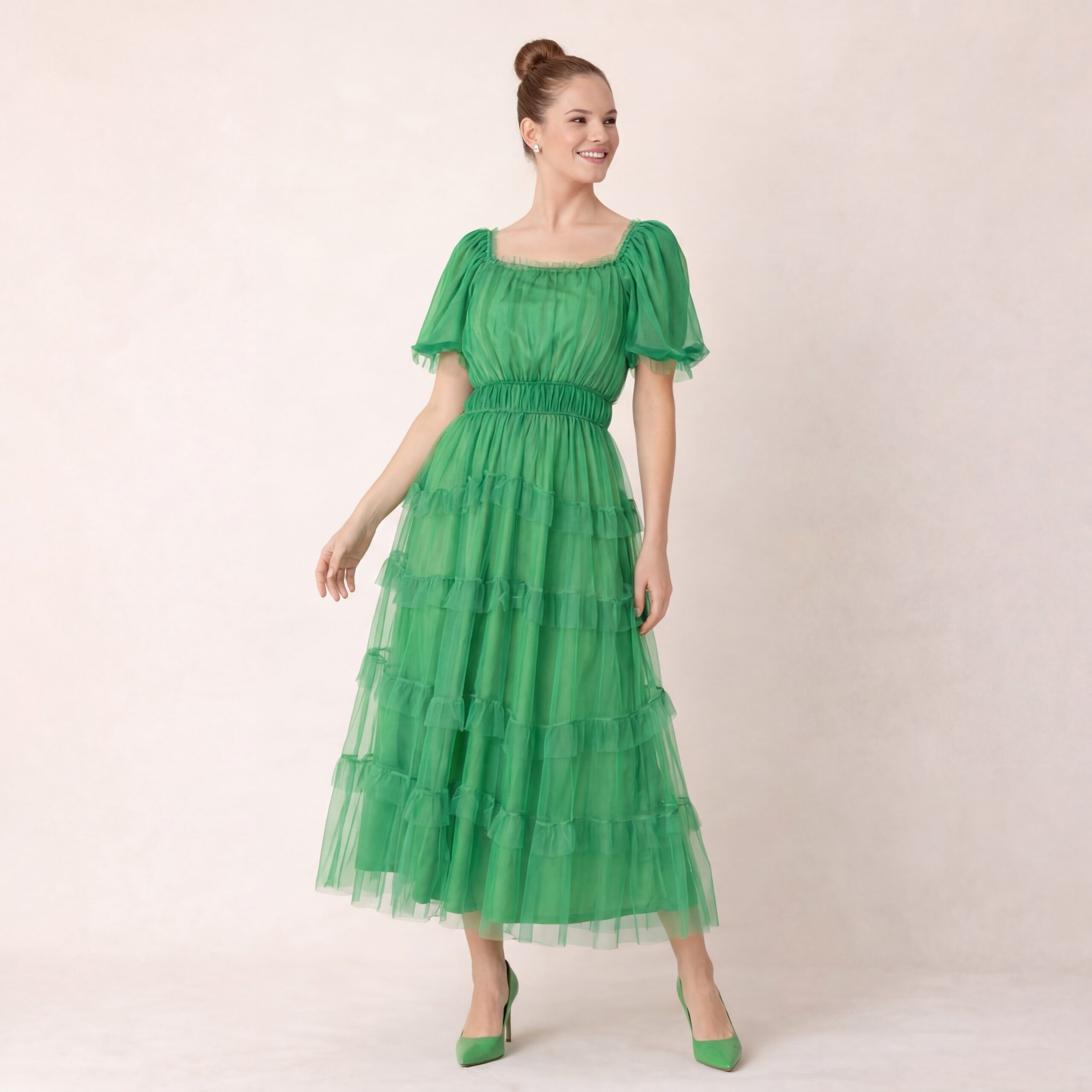 Green Tiered Tulle Midi Dress