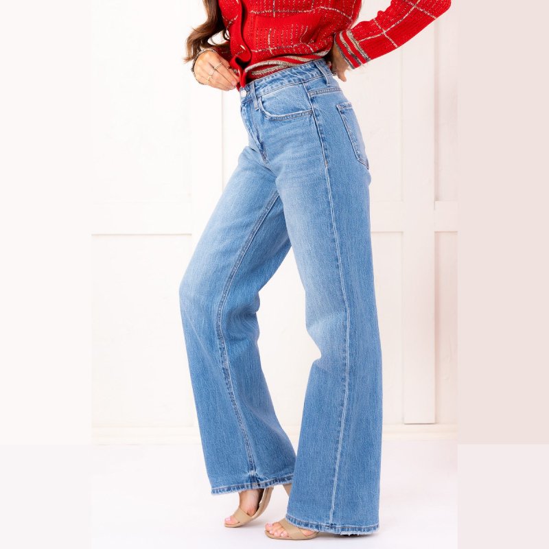 Upgrade your denim collection with the Vanessa High-Waist Wide-Leg Jeans. Designed in a classic medium wash with a vintage-inspired aesthetic, these jeans bring timeless retro vibes to your wardrobe. The high-rise waist flatters your silhouette, while practical pockets ensure everyday utility. A front button and zip closure complete the look with a polished finish.
