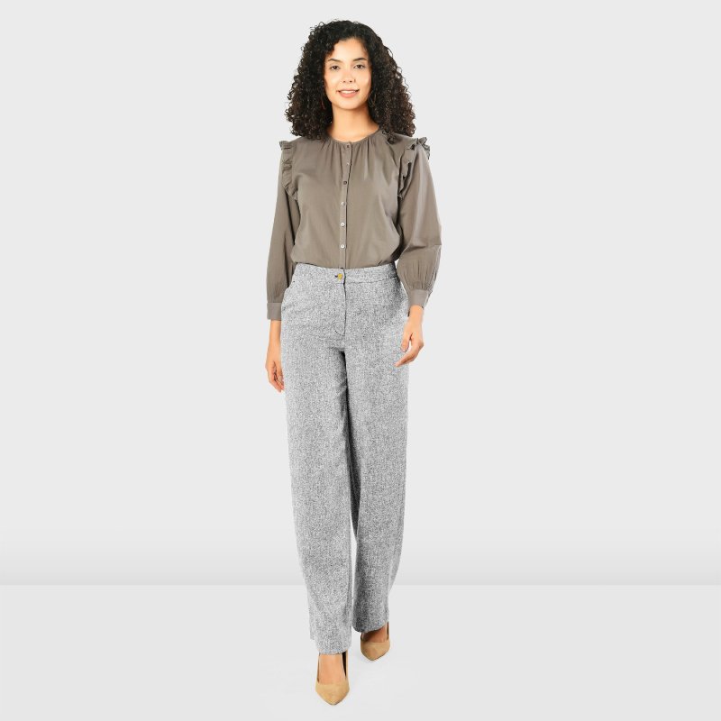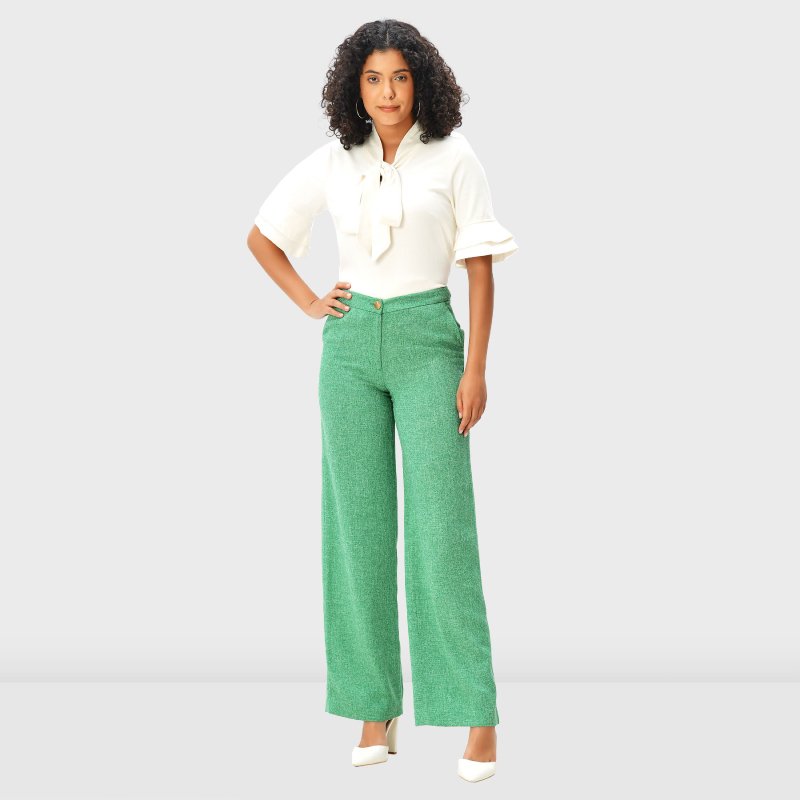 Our wide-leg pants offer a refined yet contemporary look, crafted from crosshatch suiting fabric for a polished, textured finish.- Designed to reach full length when worn with 3" heels.