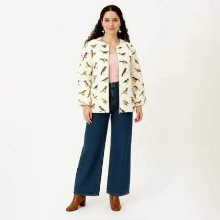 Perfect statement jacket for bird lovers and print enthusiasts.