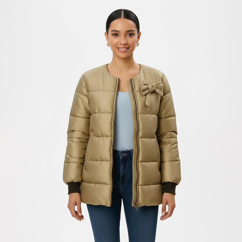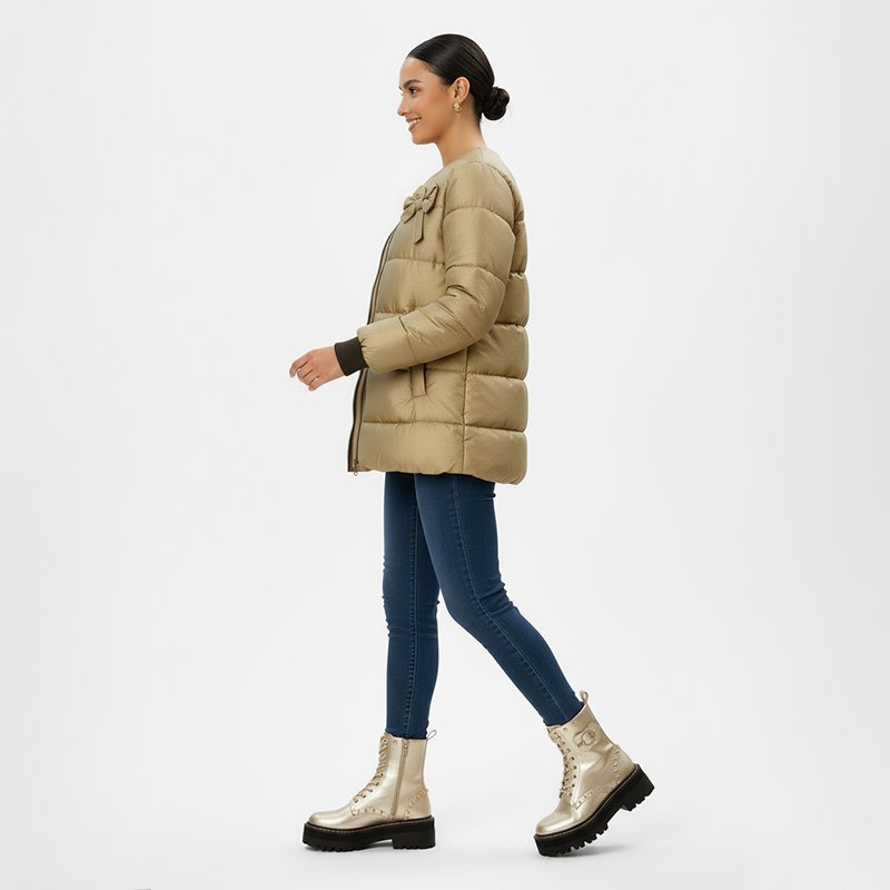 Turn heads this season with this metallic gold puffer bomber jacket. Its bold shine, quilted warmth, and sleek bomber cut make it the ultimate statement piece for casual days and festive nights alike.-